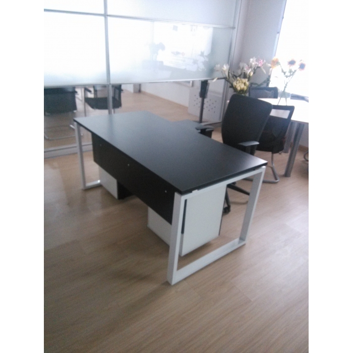 客户需求:带活动柜,不要副柜,桌面开穿线孔。