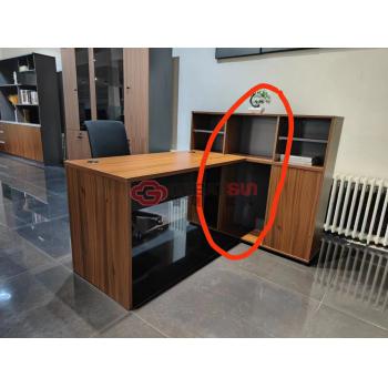 1214989,尺寸:1500*900*1100 #侧柜尺寸缩短至900,中间标注的格子取掉,只留机箱柜和物品柜;左副柜,材质:三聚氰胺板,颜色:黄金胡桃+云彩雅黑