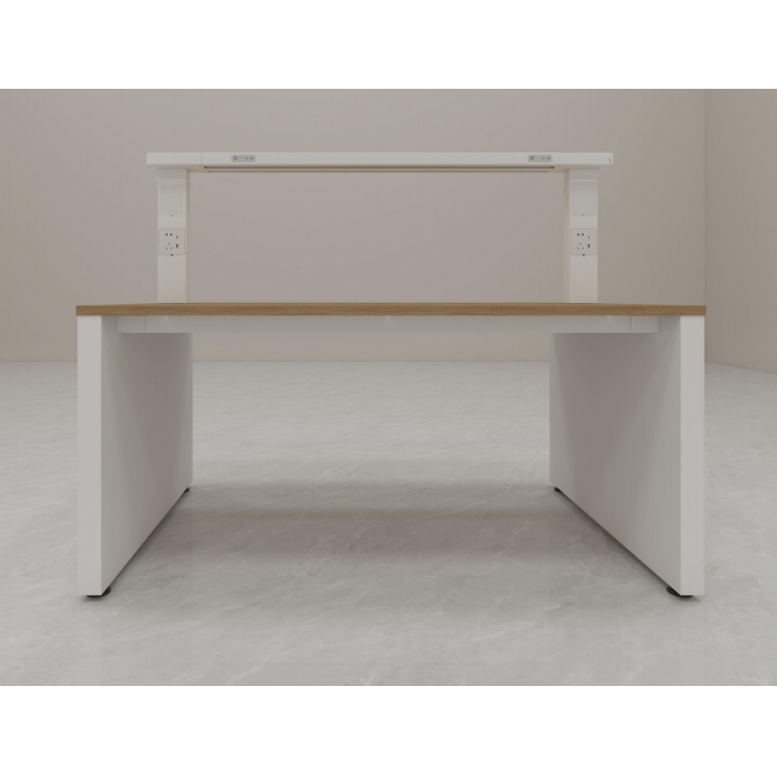 12.桌架:桌腿采用60mm*30mm矩形钢管组合成“门”型框架,结构设计使桌架更加稳固,能够承受较大的重量。框架内外焊接钢板用于隐藏电源线,不仅使桌架外观更加整洁,还提高了用电安全性。横梁50mm*25mm矩形钢管,方管厚度1.5mm,表面采用环氧聚酯粉末为涂层材料,经静电粉末喷涂工艺处理后高温固化成型。所有钢材均采用国家标准钢材,各钢件经除锈、酸洗、磷化等工序,经防锈处理,结构稳定,结实耐用,静电喷塑处理后,色泽饱满,附着力强,牢固而不松动。桌架底部配置塑料调节脚。
