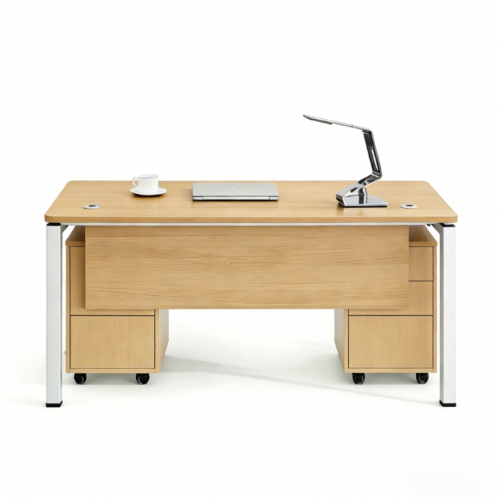 1312875,尺寸:1700*800*760mm,材质:三聚氰胺板+钢制,颜色:桌面:新靓木,桌架:暖白色