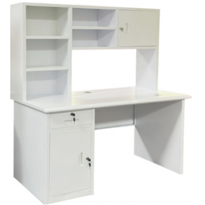 客户需求:办公桌 规格:1200*600*1600±2mm 1.桌面采用冷轧钢板制作,壁厚1.2mm;内衬颗粒板提高桌面平整度。 2.桌体采用1.0mm的冷轧钢板制作,桌脚采用1.2mm的冷轧钢板制作,桌上架采用0.8mm的冷轧钢板制作,带背板,可拆卸。 3.抽屉使用内凹扣手,采用不小于1.0mm的冷轧钢板,桌面带1个穿线孔。 4.书架:整体采用0.8mm的冷轧钢板,设计美观,书架带有柜门,拉手使用内凹扣手。 五金:采用可拆卸隐藏式静音镀锌合页,锁扣采用内嵌隐藏式挂扣; 5.钢制件外表面处理工艺:全部采用除油、除锈、磷化、清洗、静电喷涂;外观:焊接与连接部位牢固、可靠,产品外露部件均无尖锐棱角,钢制件外表面采用除油、除锈、磷化、清洗、静电喷涂,可防腐蚀、耐老化,表面光洁、美观。 6.颜色:白色。
