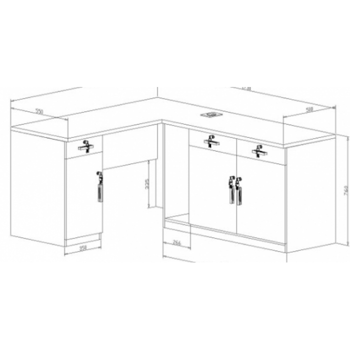 客户需求:桌子下面全是对开柜门,里面带两层活动层板。不要拉手。