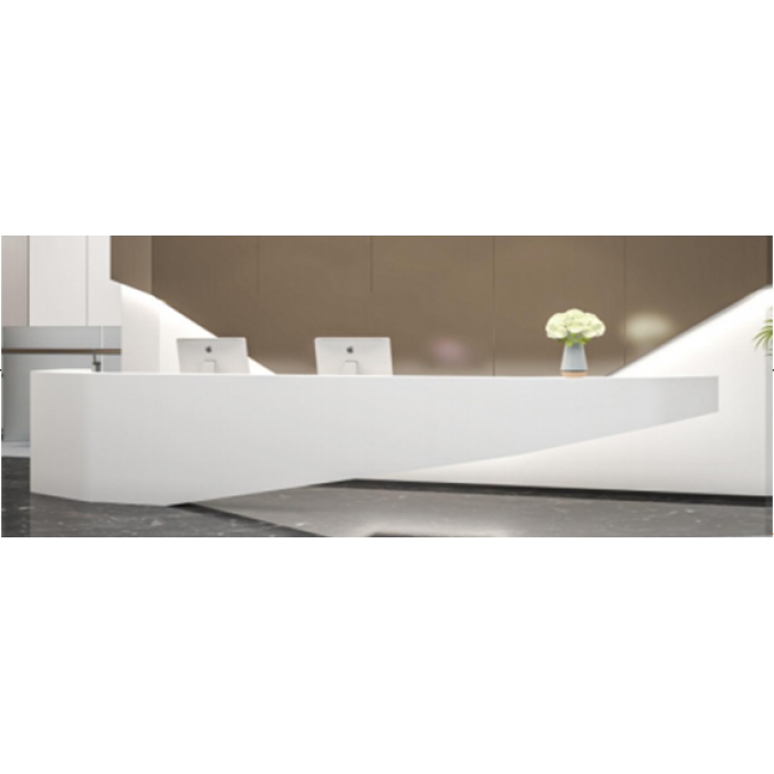 1623997,尺寸:3600W*900D*1100H,材质:1.内部框架:选用优质白蜡木实木制作,2.外部面材白色人造石;3.桌面≥25mm,桌面下带1个侧板、门板≥18mm,储物柜,可根据客户现场留的强弱线点位开走孔位,便于使用;4.▲基材:采用优质中密度纤维板 5.▲油漆:内侧区域为白色水性漆饰面,6.五金件:优质五金连接件。,颜色:鱼肚白
