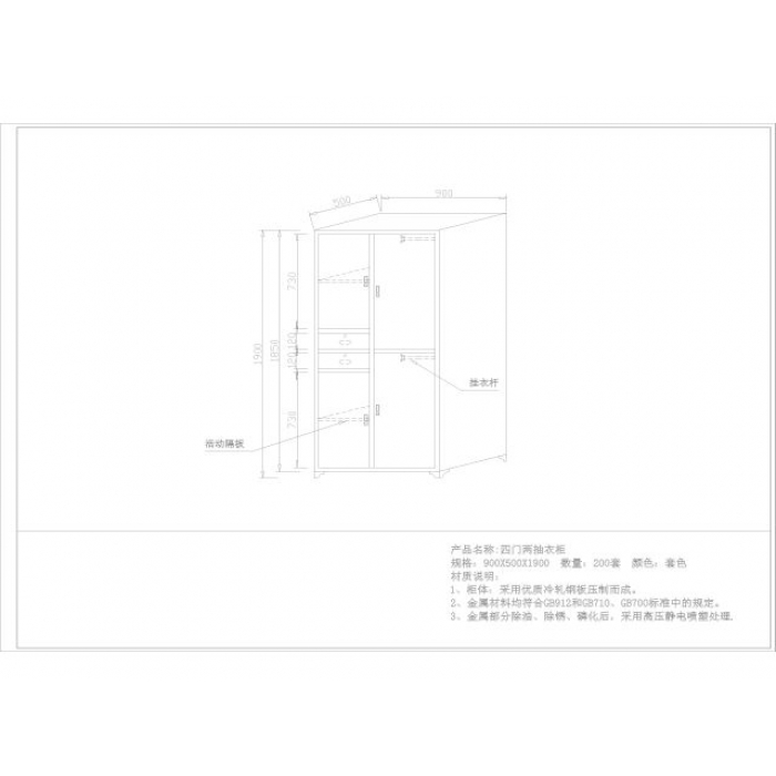 1、柜体采用优质冷轧钢板压制而成。 2、金属部分除油、除锈、磷化后采用高压静电喷塑处理。