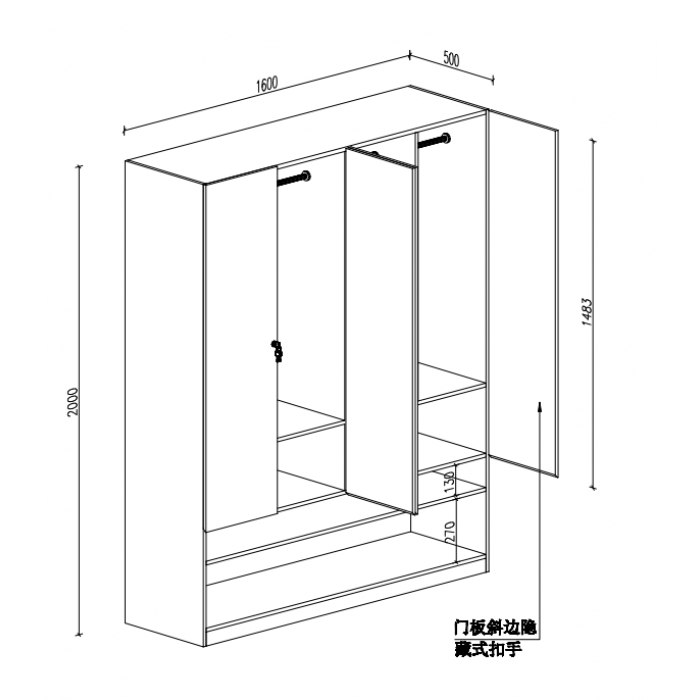 客户需求:备注:扣手采用门边隐藏式扣手,柜门带锁