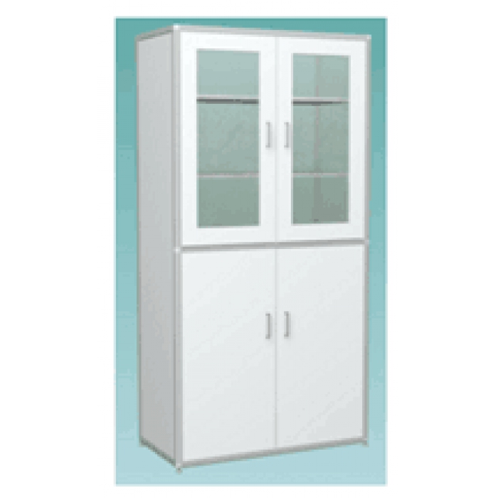 客户需求:铝木结构,柜体框架:采用模具成型的专用铝合金方管制作,柜体衬板:采用16mm厚防潮三聚氰胺双面贴面板,柜门:上部为整体镂空木框对开玻璃门,下部为整体木门,木框和木门材料与衬板相同。、搁板:上柜设置2块可上下升降调节活动搁板,下柜设置1块活动搁板。柜脚:采用特制模具ABS注塑脚垫,高度可调。