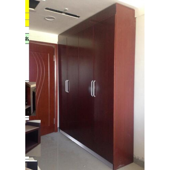 2112707,尺寸:2000*420*2350,材质:板材采用环保三聚氰胺板,板材甲醛释放量≤1.5mg/L,达到国家(E1级)标准,符合GB/T11718-2009标准中的规定。 2、基材各板件加工工艺及厚度:(1)柜体侧板、立板、上板、下板、门板厚度为18mm。(2)后背板:采用16mm三聚氰胺板制作。(3)群边:采用1.0mm优质冷轧钢板模压成型,表面采用同板材颜色相同的木纹转印。 3、封边:采用1mm厚优质同板材颜色的同色PVC封边机器一次封边成型。,颜色:已样品色板