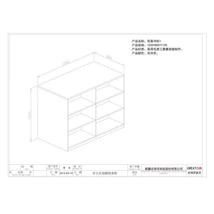 客户需求:材质要求灰白色三聚氰胺板,顶,底,侧板用25mm厚料,其余用16mm厚料。上面放书考虑配件连接牢固。
