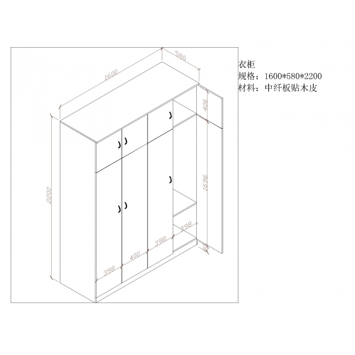 2112921,尺寸:1600*580*2200,材质:中纤板贴木皮,颜色:胡桃红