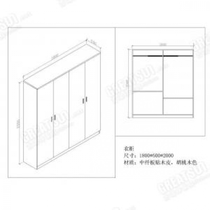 2112934,尺寸:1800*500*2000,材质:中纤板贴木皮,颜色:胡桃木色