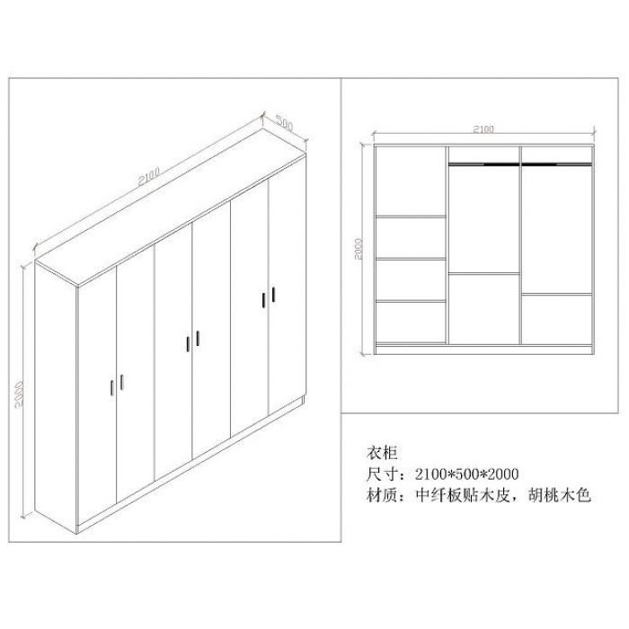 2112955,尺寸:2100*500*2000,材质:中纤板贴木皮,颜色:胡桃木