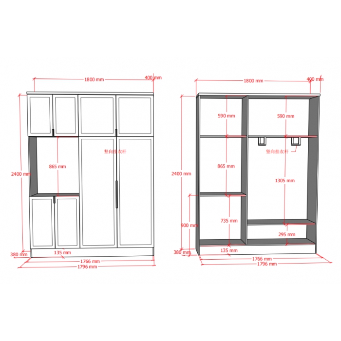 2123999,尺寸:1800*400*2400,材质:实木框架+油漆工艺,颜色:红木色(YZ-B8)