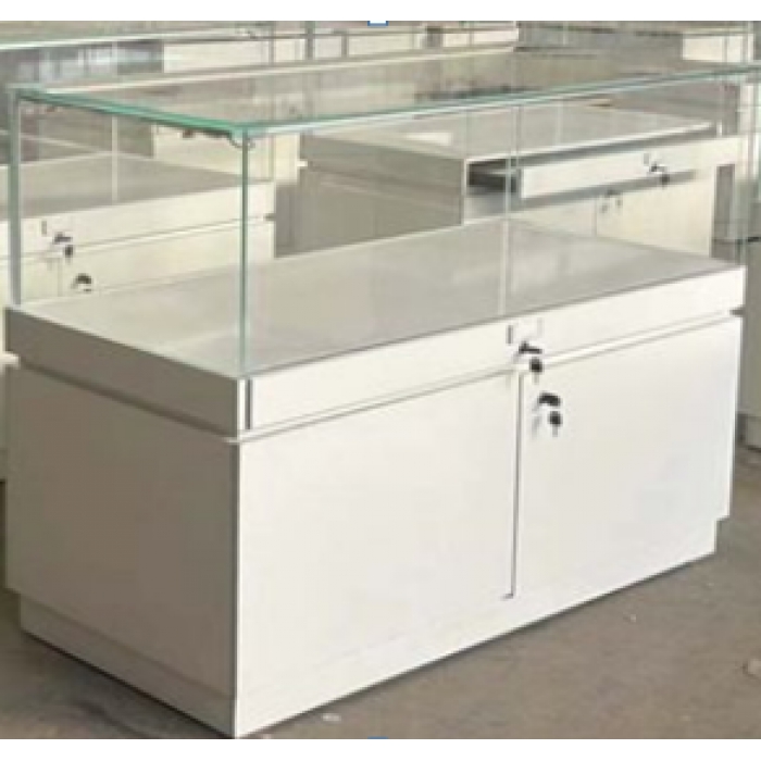 客户需求:1、规格:≥1000*800*1200(mm) 2、上下部结构:上部玻璃罩,打开方式为单门侧开式,下部双门储物柜。 3、玻璃罩高600(mm),采用8mm钢化玻璃, 4、推拉展示台,隐藏式安全锁具。 5、双门储物柜:材质为烤漆多层板。 6、玻璃顶部置有LED灯带,开启方式在柜内。