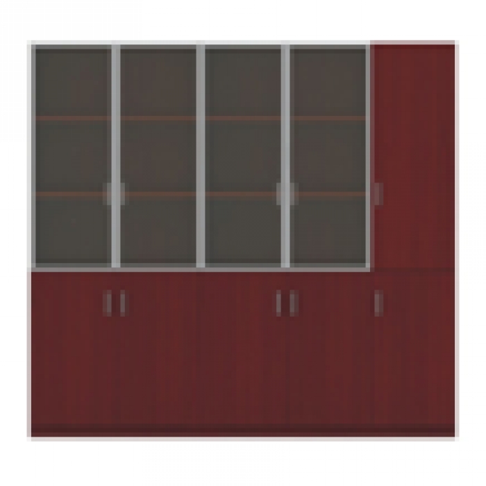 2141998,尺寸:2150(W)x450(D)x2000(H),材质:面材:面板、木制柜门采用刨切浅胡桃木木皮,厚度为0.6mm,其余部件全部采用金属灰仿皮漆,玻璃门框采用优质铝合金型材制作。,颜色:浅胡桃色