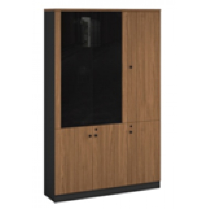 客户需求:1.基材:采用优质刨花板基材,环保型三聚氰胺板饰面; 2.封边采用优质1.5mmPVC封边条; 3.结构:顶板、底板、层板、侧板采用厚度为25mm三氢板,中立板、门板厚度为16mm三氢板;柜门玻璃采用5mm厚黑色钢化玻璃; 4.五采件用优质三节式静音阻尼导轨、不锈钢液压铰链; 5.颜色:北美胡桃色+铁灰+黑色玻璃。
