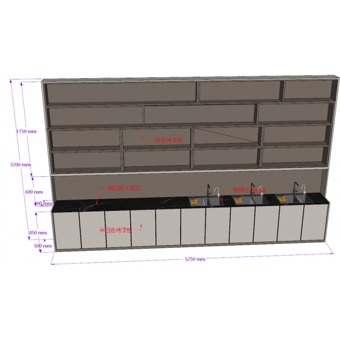 2199527,尺寸:5150*500*2950,材质:烤漆,颜色:棕色+黑白大理石