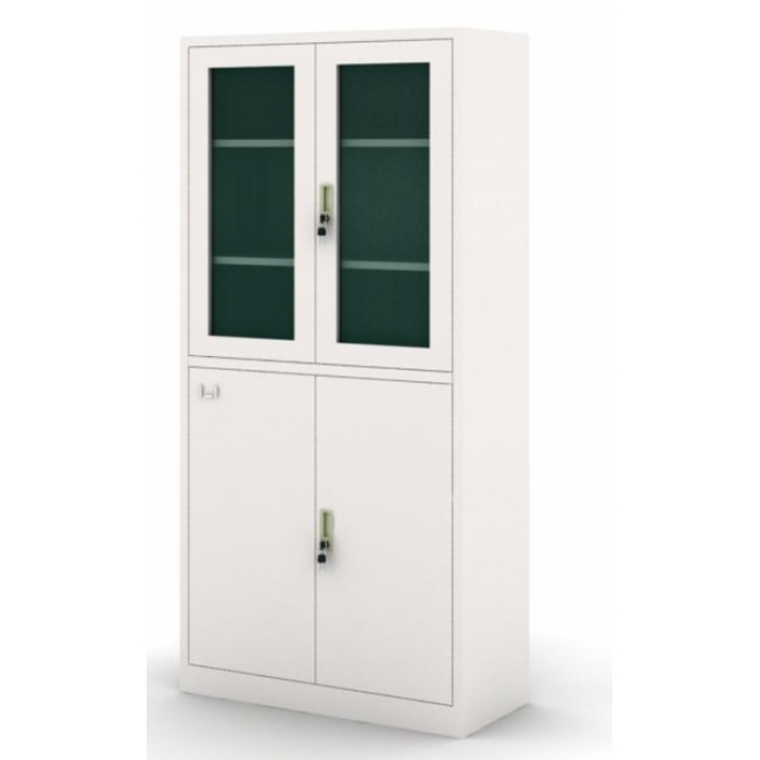客户需求:规格:长Χ宽Χ高不小于900Χ390Χ1800mm 1.柜体:采用国标0.8mm厚优质冷轧钢板,须符合GB/T 3325-2017、GB/T 10125-2021、QB/T 3832-1999标准,拉手采用内凹拉手,柜内隔板活动可调,可根据个性需求灵活使用; 2.上门共二块活动隔板,可上下调节,上门采用5mm玻璃,下门为钢制柜门,内凹扣手,明锁扣; 3.柜门内装有减震垫,以减轻关门时的噪音,采用可拆卸隐藏式静音镀锌合页; 4.钢制件外表面处理工艺:全部采用除油、除锈、磷化、清洗、静电喷涂;外观:焊接与连接部位牢固、可靠,产品外露部件均无尖锐棱角,符合GB/T3325-2017《金属家具通用技术条件》; 5.钢制柜须符合GB/T3325-2017、GB/T35607-2017、QB/T4371-2012、GB/T 1741-2020标准,抗菌性能抑菌率达到≥99% 6.颜色:暖白。