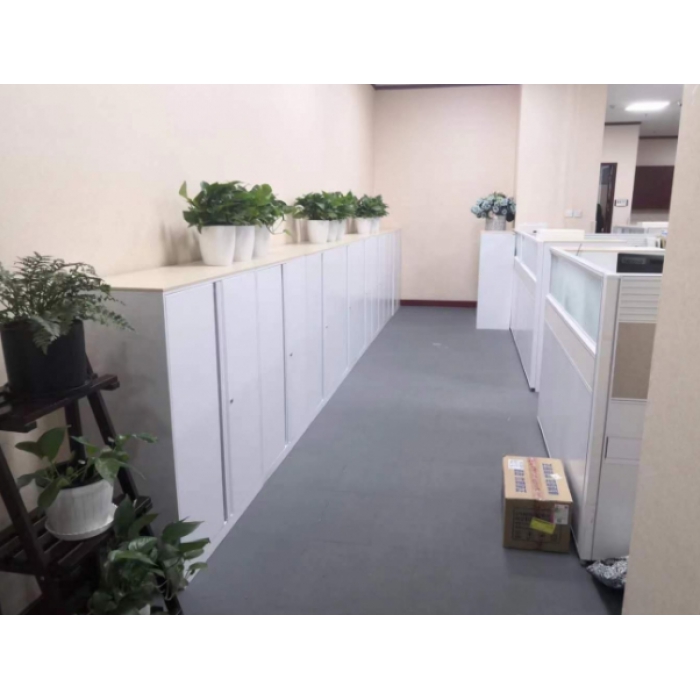 客户需求:备注:款式如图所示,内部结构有一层活动隔板,顶板为白橡木色三聚氰胺板,与员工屏风工位配套使用
