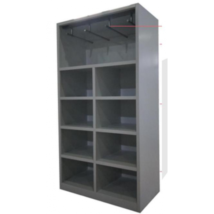 客户需求:1.柜体:采用国标0.8mm厚优质冷轧钢板; 2.层板:共分为5层,柜体层板用0.8mm冷轧钢板制作; 3.结构:上层为毛巾架,平均分布8根直径18mm的不锈钢圆管供挂毛巾使用;下面4层为脸盆架,平均分为8个格子。 4.在柜体底部加装防潮脚卡;