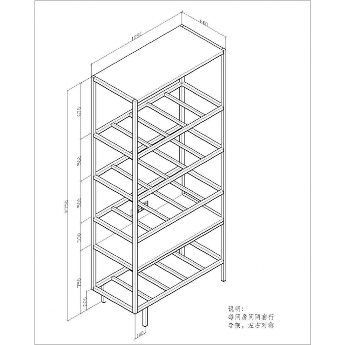 客户需求:立柱采用30*30方管。中间背部设计连接墙面膨胀螺栓孔,第二层线面放置25mm厚三聚氰胺板