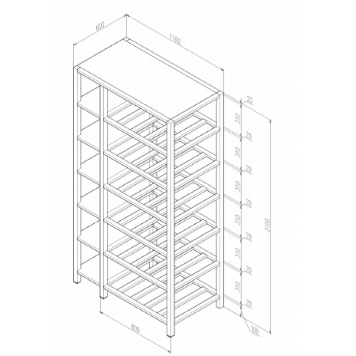 客户需求:行李架(含鞋架)整体层次分明,结实牢固。行李架部分四柱采用40*40*1.0(mm)优质方管制作;规格为800*600*2100(mm),整体分为6层,每层有6根(含两侧边框)高20mm、宽40mm,1.0mm厚方管制作,每层间隔平均分布;;鞋架部分四柱采用40*40*1.0mm优质方管制作,尺寸为:300*600*2100(mm),鞋架托板使用≥0.8mm厚优质冷轧钢板折弯焊接制作,鞋架分为6层,每层间隔平均分布。行李架(含鞋架)顶部用≥0.8mm扣板覆盖,底层离地100mm,行李架与鞋架连接处用≥0.8mm冷轧钢板隔开。