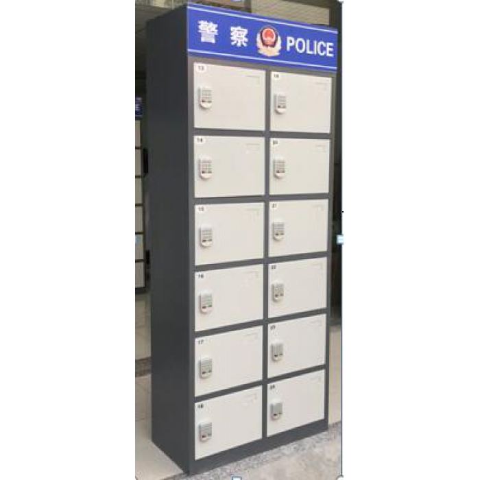 客户需求:1、评审价格及供货期;2、柜门带透气孔、标签牌;3、采用普通转舌锁;4、单警装备柜顶部带汽车广告贴:“警察”,如图。