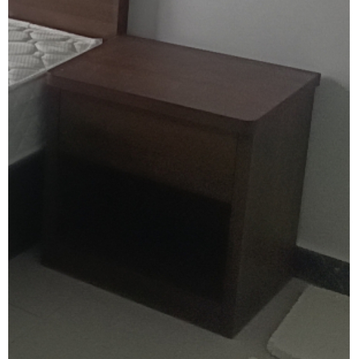 客户需求:尺寸:650mm*500mm*550mm 材质:三聚氰胺板;桌面、侧板采用32mm加厚,床头柜四角带圆角,带踢脚板 颜色:塔科橡木,导轨为黑色 要求:和样品保持一致