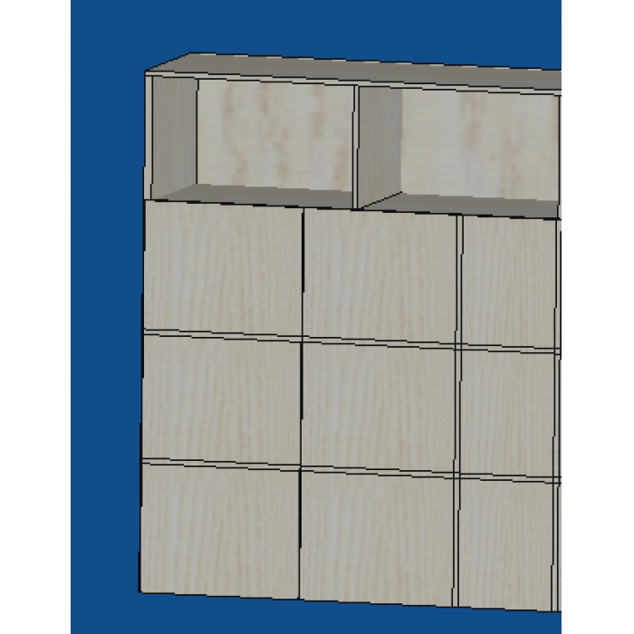 客户需求:柜子最上层中间一块立板,下面左侧对开门,不带立板,右侧单开门。顶板,侧板用25的板材,其他用16的板材,铝合金拉手。
