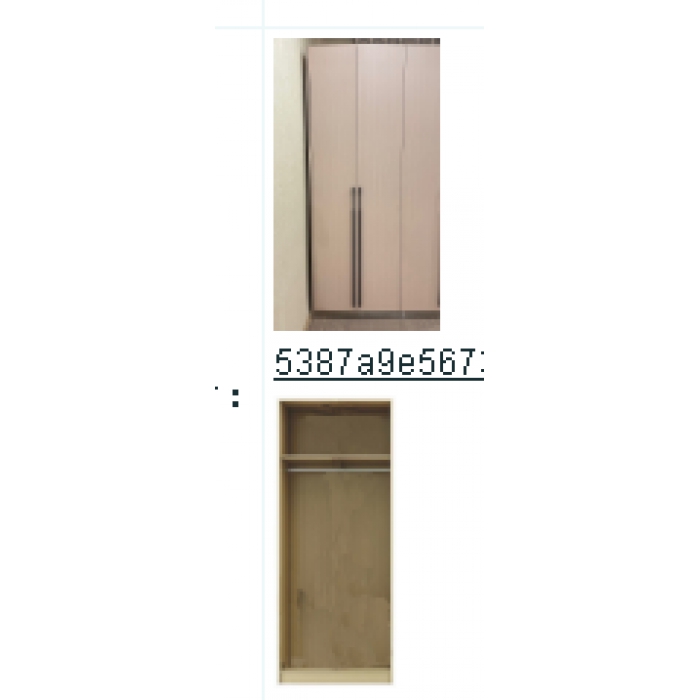 客户需求:备注:柜体裙边做成不锈钢裙边,衣柜:800*500*2000,颜色为新靓木,框架采用16mm厚板子,门板18mm厚,柜内上面有固定层板一块,层板下面有不锈 钢挂衣杆,门拉手采用1000mm长黑色拉手,踢脚板用不锈钢板包边,侧面和正面不要看到柜子顶板