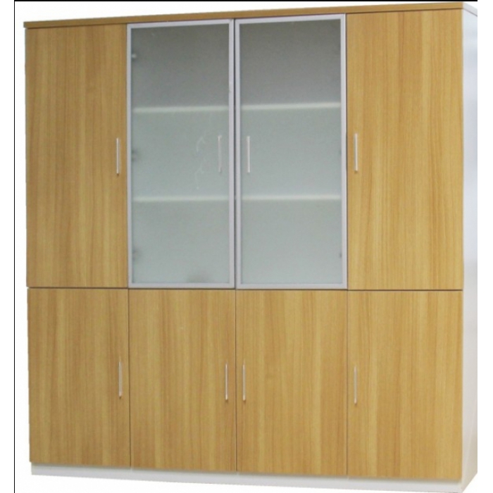 2212549,尺寸:2400*400*2000mm #按照六门评审,中间添加两玻璃门,共六门2400mm,每玻璃门内带有两块隔板。两侧木门内带有挂衣杆,下方六门内均带有一块隔板。,材质:三聚氰胺板+玻璃,颜色:阳光黄橡