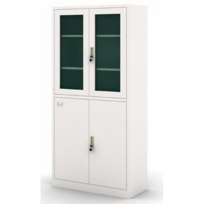 无抽屉对开玻璃门书柜
