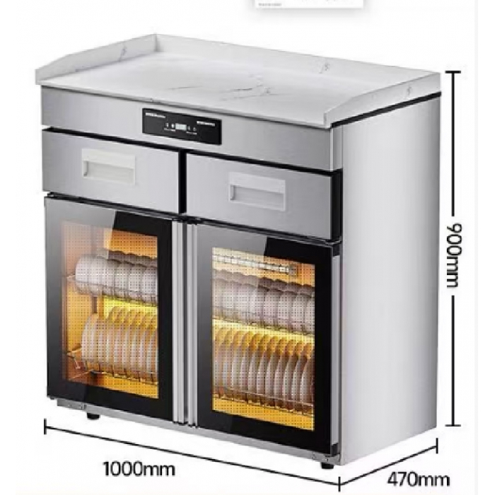 客户需求:YTP-1000 产品层数:单边2层双边4层 消毒方式:红外线+臭氧 烘干方式:75°C 产品功率:400W 操作方式:机械旋钮 发热管:2条 层架尺寸:960*355*40mm201 层架材质:无磁不锈钢 单层承重:20KG 接电方式:配10A插头 箱体材质:0.4mm不锈钢 功能时间:0-60min 产品尺寸:1000*470*900mm中纤板厚》25mm,柜体钢板框架厚1.2mm,钢板门厚1.0mm。
