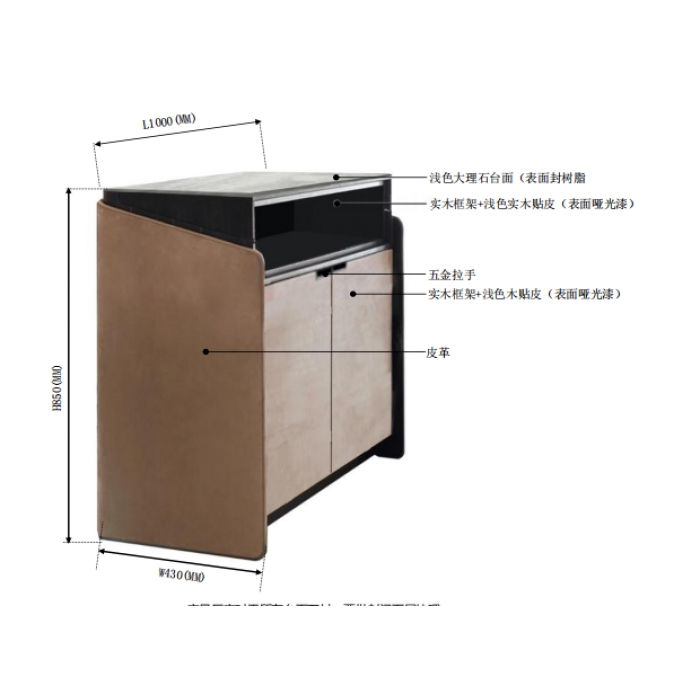 2226983,尺寸:1000Lx430Wx850H(MM),材质:大理石+实木+皮革,颜色:白色+黑色+浅棕色