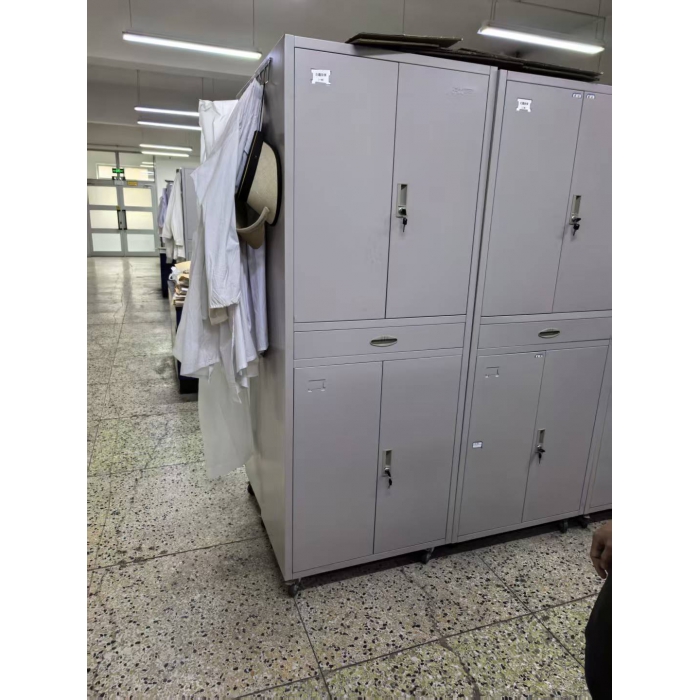 客户需求:1.长750mm×宽450mm×高1900mm,柜子底部带4个轮子,2个转轮,2个固定轮,高度:100mm; 2.上柜与下柜中间设计抽屉高度100mm; 3.上柜与下柜里边分别设计4层固定隔板,隔板与隔板高度150mm 4.通体0.8mm冷轧钢板,柜体不要锁具,柜门安装磁铁吸附避免无故开合,柜体底部与轮子处加厚材料处理,保证柜体结实耐用