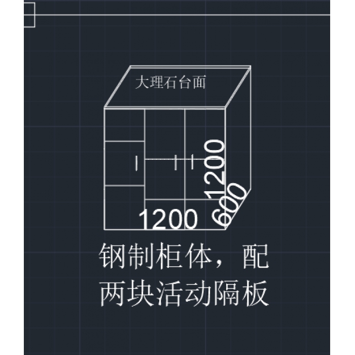 客户需求:0.7mm柜体,台面铺石英石,带两块活动隔板