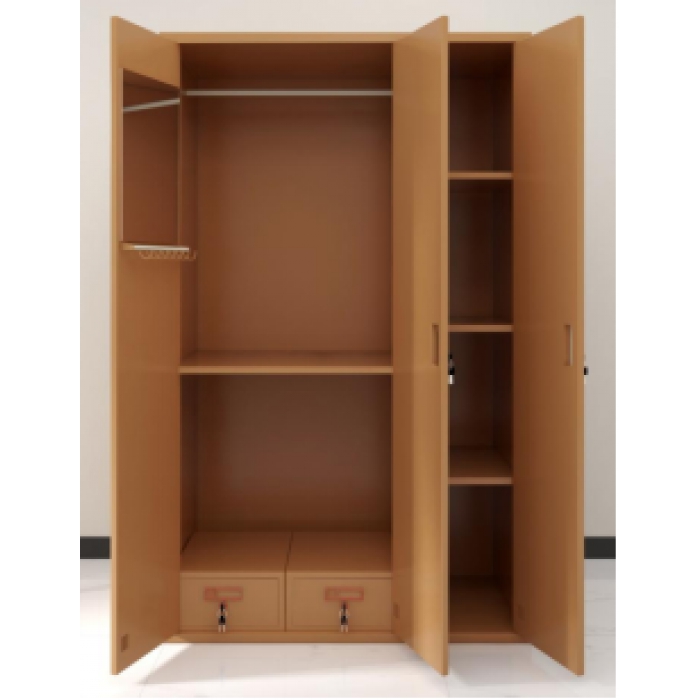 客户需求:1、柜体钢板:采用优质冷轧钢,所有钢材均采用国家标准钢材,钢板厚度0.7mm 2、结构:采用左右结构,左侧为双开门结构,内部双层结构(隔板为固定式,高度350mm),上层配置挂衣杆,带有仪容镜(可活动式),带毛巾架,配置毛巾挂钩,底部设计1个抽屉,带锁,右侧为单开门结构,内部四层结构,三层固定层板,柜门内装有减震垫, 3.锁具采用内嵌式,门吊锁。