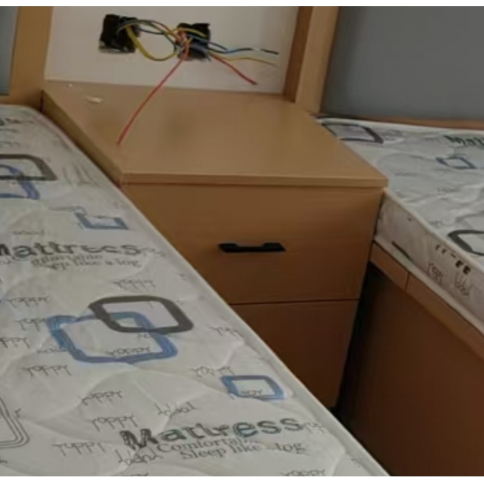 客户需求:床头柜正面左右角导圆,45度斜拉手,上下两个抽屉。
