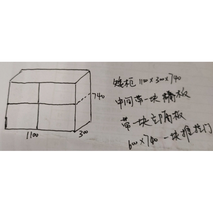 客户需求:注明:中间带横的一块固定隔板,带竖隔板,带一面推拉门。