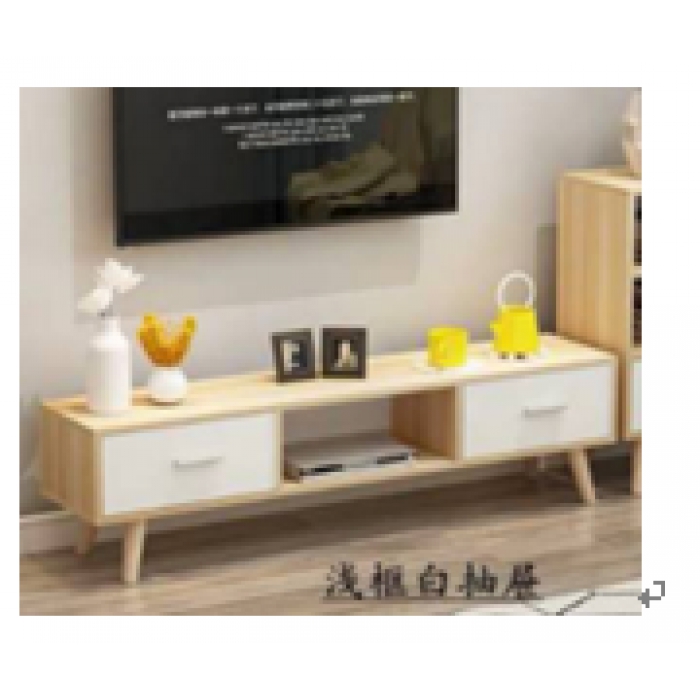 客户需求:采用库存积压五彩湾黄樱桃材料,柜体黄樱桃。抽面白色同五彩湾颜色一致,拉手弓形,电视柜脚按李工确认得走