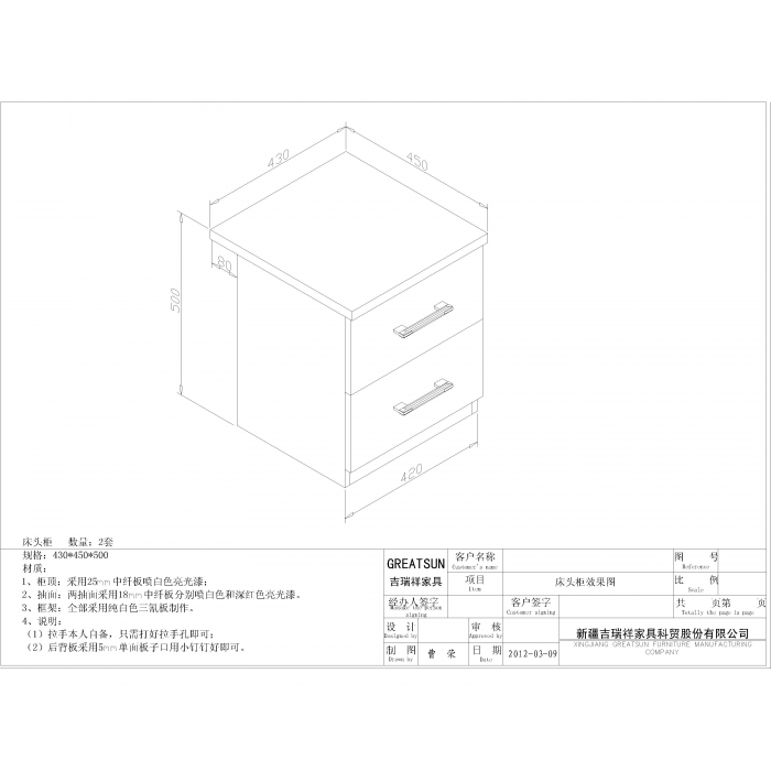 2312976,尺寸:430*450*500,材质:中纤板喷白漆+白色三聚氰胺板,颜色:白色亮光漆