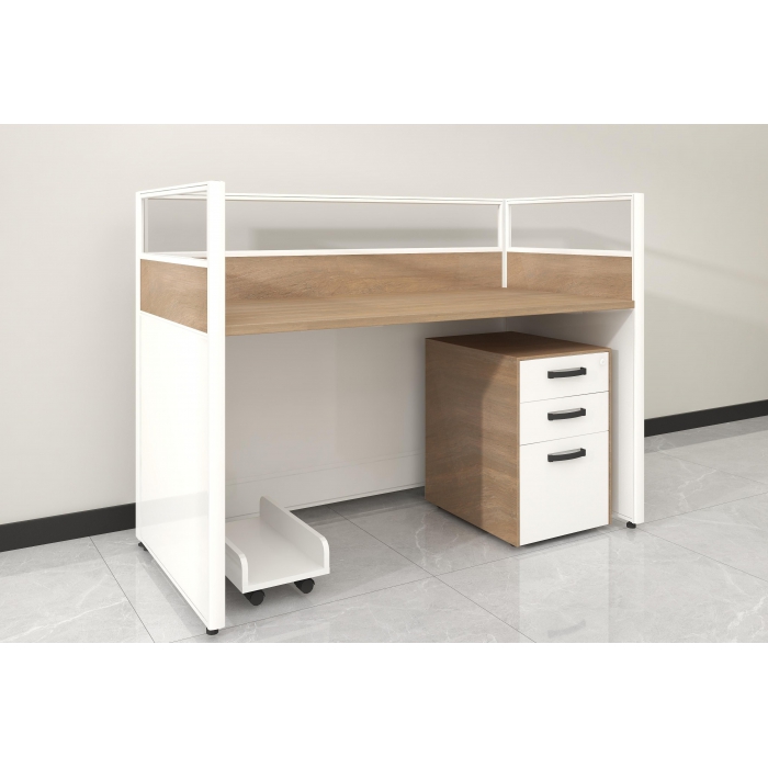 客户需求:带钢制暖白机箱架,桌面25mm三氰板带两个60穿线孔,磨砂玻璃,桌下钢制凸点装饰板,桌上新靓木装饰板