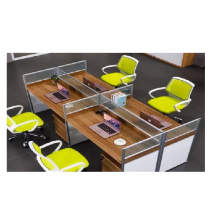 客户需求:面对面两人位,25组。 每组带2个板式机箱架、2个木制活动柜