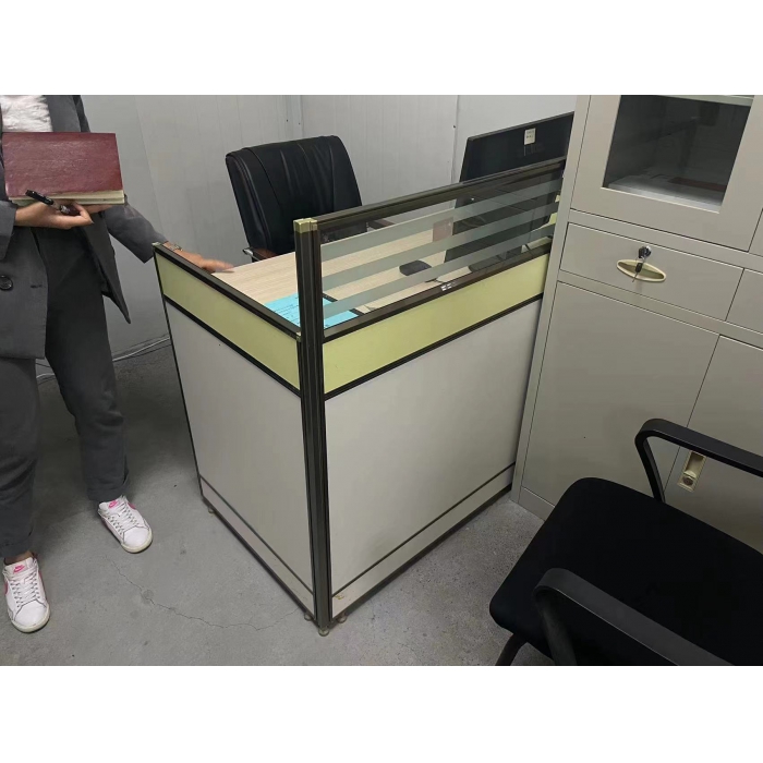 客户需求:结构:桌面以上前左右装饰板,装饰板高度100mm,前装饰板上磨砂玻璃,桌面以下带走线槽模块孔位预留三个强电1个弱电 颜色:桌面新靓木,桌面以下及装饰板麻面暖白 配套:三抽活动柜、机箱架、键盘托