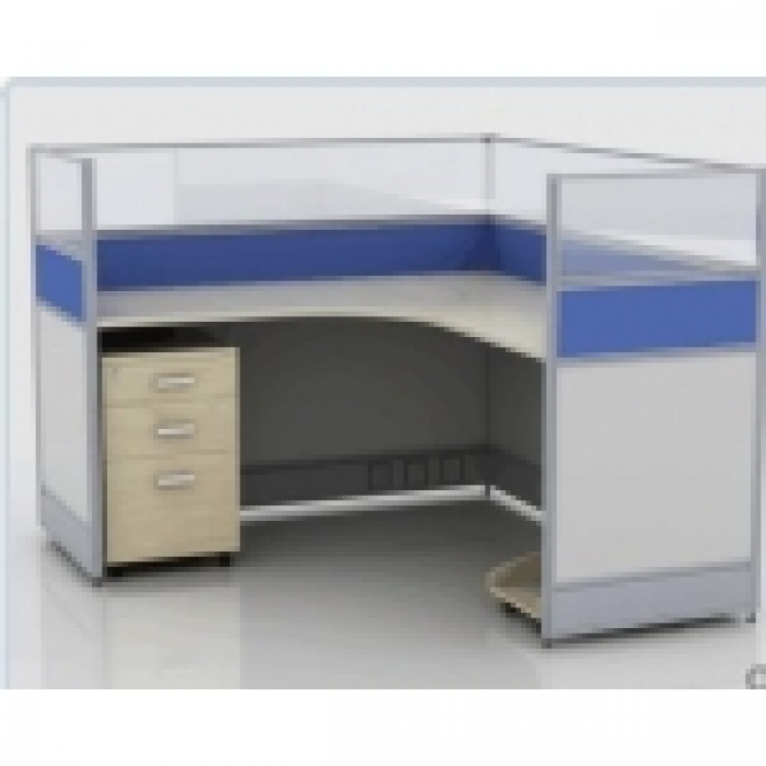 客户需求:屏风工位含机箱架、键盘键、活动柜,屏风桌面以下材质为钢板。屏风框架为白色框架,中间蓝色单面板,磨砂玻璃为全玉砂玻璃。