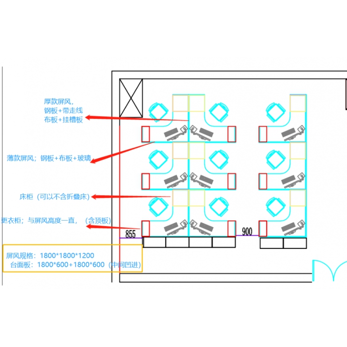 客户需求:线槽板开装多功能插座长条孔,制作时提供多功能插座。薄款屏风厚度20mm,厚款屏风厚度40mm。只算屏风价格,其余部件已单另评审。