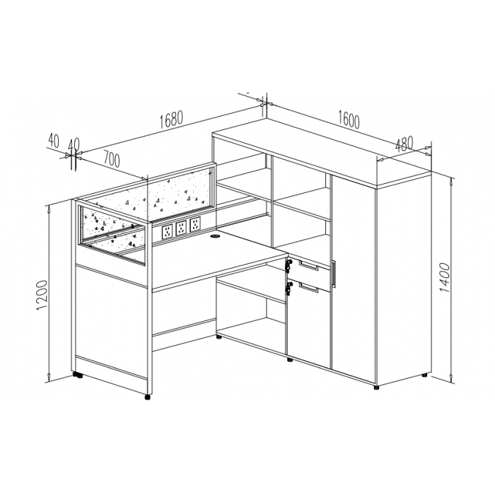 2412366,尺寸:1680*1600(700)*1400(1200)mm,材质::A4铝合金型材+屏风饰面板+磨砂玻璃+三聚氰胺板,颜色:阳光黄橡+麻面暖白
