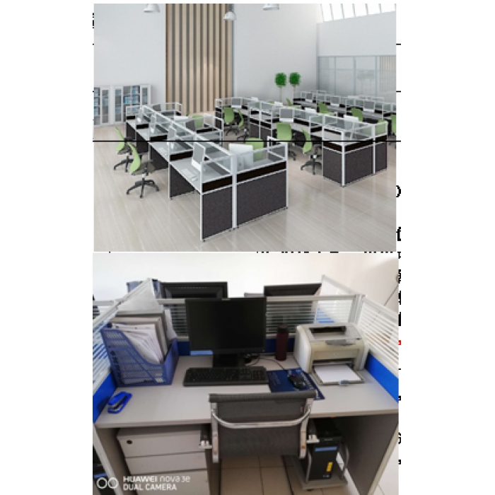 客户需求:320型材铝合金框架,桌面25浅灰三胺板,其它电信蓝板材,桌面带穿线孔,不要活动柜、机箱架、键盘架。请快速评审,谢谢!主屏:1500*高1200,侧屏600*高1200