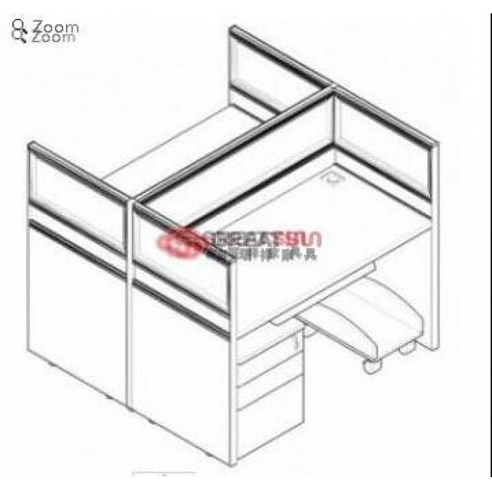 客户需求:材质:T3款式屏风型材+三聚氰胺板+玉砂玻璃+三氰板桌面+机箱架+PVC键盘、带活动柜。六工位相连,左右各三。