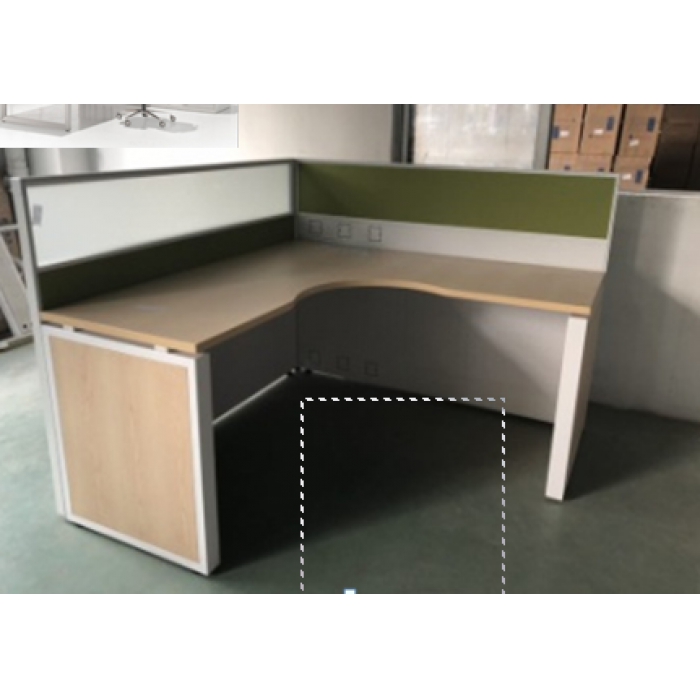 2412519,尺寸:1400*1400*1200,材质:铝合金型材,三聚氰胺板桌面,三聚氰胺板饰面,玉砂玻璃,带三聚氰胺板活动柜,三氢板机箱架,PVC键盘,颜色:白枫色,三氢板