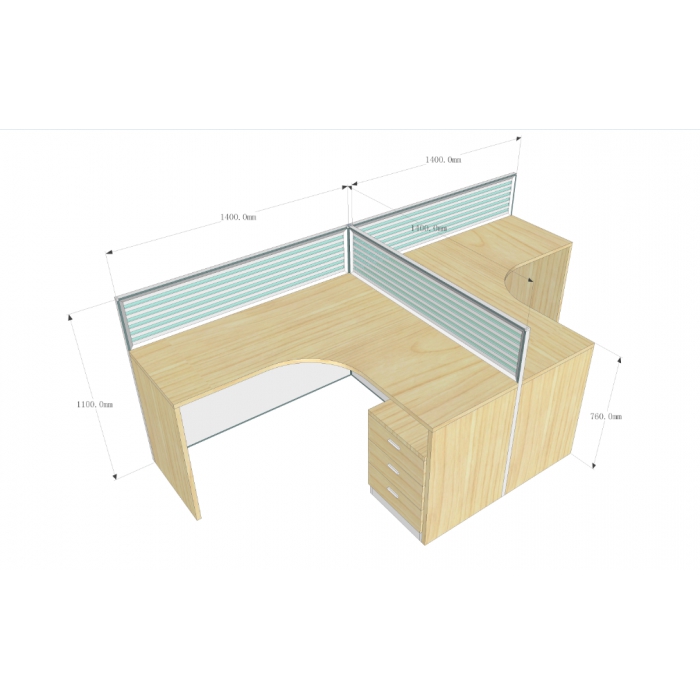 客户需求:备注:屏风型材桌面以下白枫+桌面以上磨砂玻璃。白枫桌面+机箱架+活动柜,带键盘。桌面开穿线孔